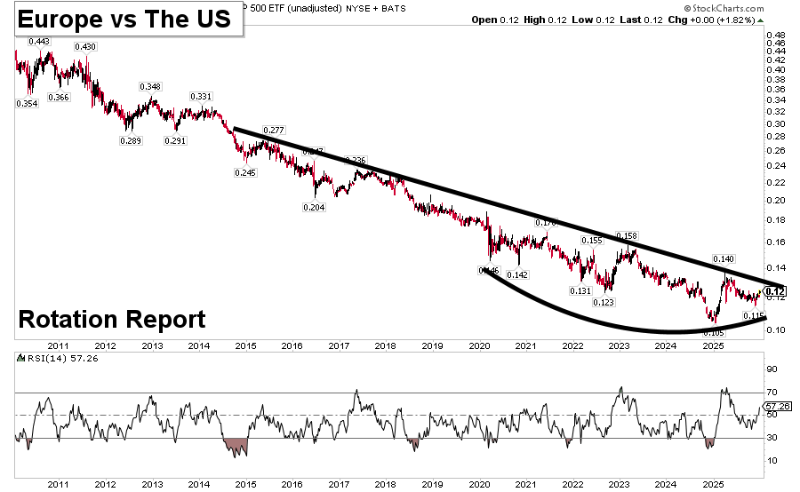 Speaking of - check out Europe vs the United States VGK/SPY trying to hammer out a higher low