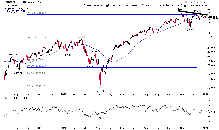 The Nasdaq 100 is going to be a great tell here. It kind of looks like a rollover setup, we’ll see how the January flows go.